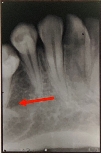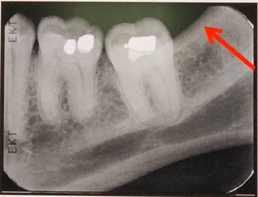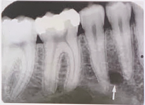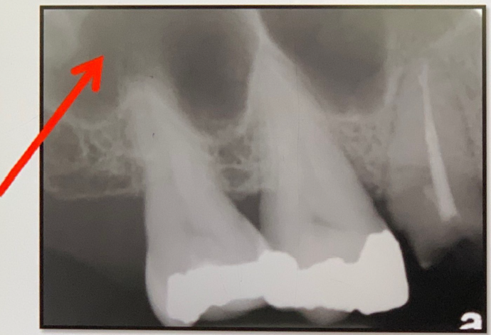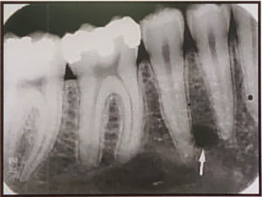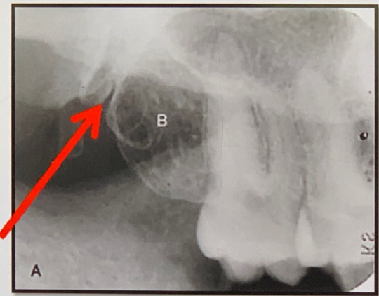Normal Anatomy Landmarks 3 Normal Anatomy Landmarks 3 1 / 19 83. what does arrow show? Hamular process Hamular notch Maxillary tubersity None of the above Hamular notch ⸻ • Shape: Narrow, curved radiolucent depression. • Location: Just behind the last maxillary molar (maxillary tuberosity), extending toward the pterygoid plates. • Medially: Ends at or near the hamulus, which appears as a small, pointed radiopaque structure. Hamular notch ⸻ • Shape: Narrow, curved radiolucent depression. • Location: Just behind the last maxillary molar (maxillary tuberosity), extending toward the pterygoid plates. • Medially: Ends at or near the hamulus, which appears as a small, pointed radiopaque structure. 2 / 19 84. What is the anatomical structure indicated by arrow in this radiograph? A.Maxillary sinus B.Periapical lesion C.lateral fossa D.Maxillary sinus septa Maxillary Sinus The borders of the maxillary sinus appear on periapical radiographs as a thin, delicate, tenuous radiopaque line. In adults the sinuses usually extend from the distal aspect of the canine to the posterior wall of the maxilla above the tuberosity. In older adults the sinus may extend farther into the alveolar process, and in the posterior region of the maxilla its floor may appear considerably below the level of the floor of the nasal cavity. Anteriorly each sinus is restricted by the canine fossa and is usually seen to sweep superiorly, crossing the level of the floor of the nasal cavity in the premolar or canine region. Consequently, on periapical radiographs of Maxillary Sinus The borders of the maxillary sinus appear on periapical radiographs as a thin, delicate, tenuous radiopaque line. In adults the sinuses usually extend from the distal aspect of the canine to the posterior wall of the maxilla above the tuberosity. In older adults the sinus may extend farther into the alveolar process, and in the posterior region of the maxilla its floor may appear considerably below the level of the floor of the nasal cavity. Anteriorly each sinus is restricted by the canine fossa and is usually seen to sweep superiorly, crossing the level of the floor of the nasal cavity in the premolar or canine region. Consequently, on periapical radiographs of 3 / 19 85. What is showing by arrow? Lingual foramen Incisive foramen Mental spine Periapical lesion Genial Tubercles (Mental Spine) bony protuberances located on the lingual surface of the mandible slightly above the inferior border and in the midline. serve to attach the genioglossus muscles (at the superior tubercles) and the geniohyoid muscles (at the inferior tubercles) to the mandible. Usually well visualized on mandibular occlusal radiographs as one or more small projections. Genial Tubercles (Mental Spine) bony protuberances located on the lingual surface of the mandible slightly above the inferior border and in the midline. serve to attach the genioglossus muscles (at the superior tubercles) and the geniohyoid muscles (at the inferior tubercles) to the mandible. Usually well visualized on mandibular occlusal radiographs as one or more small projections. 4 / 19 86. What is showing by arrow? Lower lip line Mental ridge Cortical plate of mandible Mental fossa Mental Ridge (protuberance) On periapical radiographs of the mandibular central incisors, the mental ridge may occasionally be seen as two radiopaque lines sweeping bilaterally forward and upward toward the midline. Mental Ridge (protuberance) On periapical radiographs of the mandibular central incisors, the mental ridge may occasionally be seen as two radiopaque lines sweeping bilaterally forward and upward toward the midline. 5 / 19 87. What is showing by arrow? Inferior border of mandible Nutrient canal Fracture line None of the above The inferior border of the mandible, also known as the base, is the lower edge of the lower jaw bone (mandible). It's a prominent, curved structure that runs along the bottom of the mandible. The inferior border of the mandible, also known as the base, is the lower edge of the lower jaw bone (mandible). It's a prominent, curved structure that runs along the bottom of the mandible. 6 / 19 88. what does the circle show? Periapical cyst RO Mental fossa Lowerborder of mandible Mental fossa a depression on the labial aspect of the mandible extending laterally from the midline and above the mental ridge. Mental fossa a depression on the labial aspect of the mandible extending laterally from the midline and above the mental ridge. 7 / 19 89. what does arrow show? Periapical cyst RO Mental fossa Lowerborder of mandible Mental fossa a depression on the labial aspect of the mandible extending laterally from the midline and above the mental ridge. Mental fossa a depression on the labial aspect of the mandible extending laterally from the midline and above the mental ridge. 8 / 19 90. What is showing by arrow? Lower lip line Mental ridge Cortical plate of mandible Mental fossa Mental Ridge (protuberance) On periapical radiographs of the mandibular central incisors, the mental ridge may occasionally be seen as two radiopaque lines sweeping bilaterally forward and upward toward the midline. Mental Ridge (protuberance) On periapical radiographs of the mandibular central incisors, the mental ridge may occasionally be seen as two radiopaque lines sweeping bilaterally forward and upward toward the midline. 9 / 19 91. what does arrow show? Mental foramen Periapical pathology Lingual foramen Mental spine Mental Foramen the anterior limit of the inferior dental canal that is apparent on periapical radiographs. seen about halfway between the lower border of the mandible and the crest of the alveolar process, usually in the region of the apex of the second premolar. (may be projected anywhere from just mesial of the permanent first molar roots to as far anterior as mesial of the first premolar root) When the mental foramen is projected over one of the premolar apices, it may mimic periapical disease . Ment