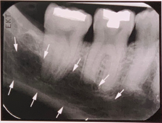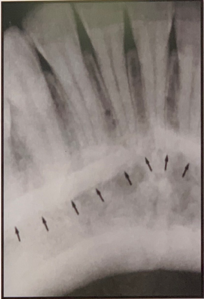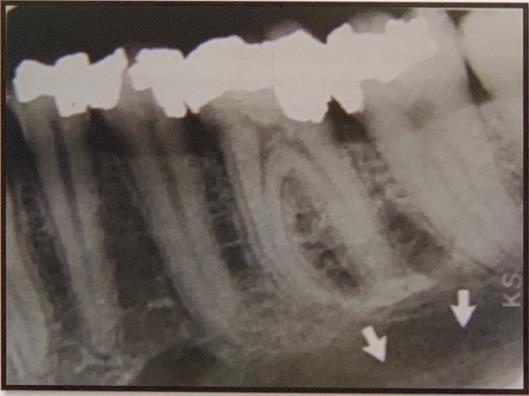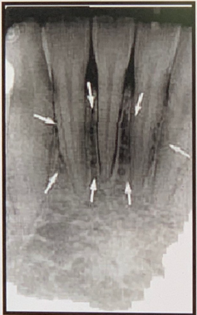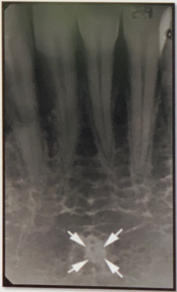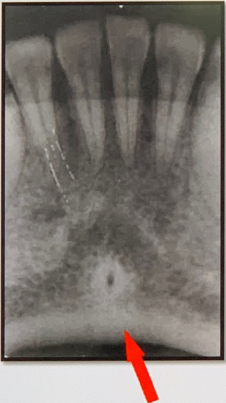 Mental Ridge (protuberance) On periapical radiographs of the mandibular central incisors, the mental ridge may occasionally be seen as two radiopaque lines sweeping bilaterally forward and upward toward the midline.