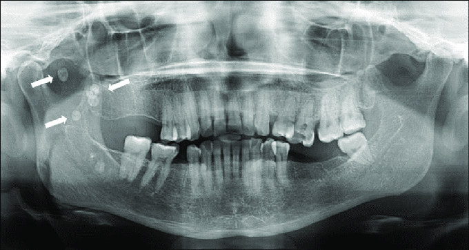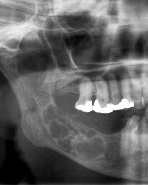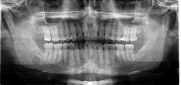 What is the most likely diagnosis for the entity associated with lower left mandible?