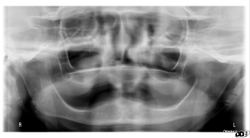 What is the most likely diagnosis for the lesion associated with the lower right side of the mandible?