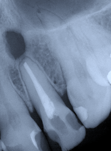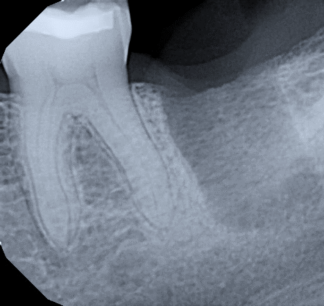 What is the most likely diagnosis for the lesion associated with tooth 3.8?
