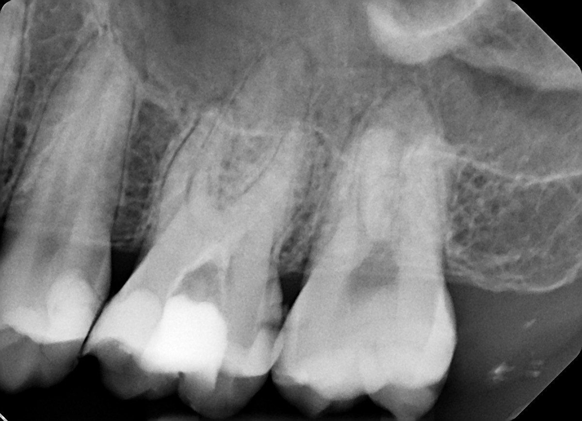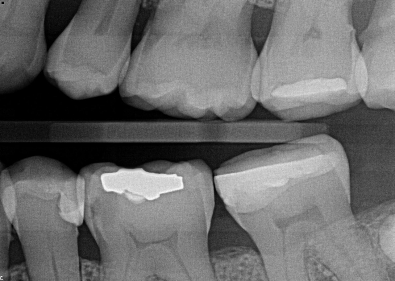 although RA2 but shows enamel break down, compare it with the distal surface of the tooth# 1.6, continuity of enamel is preserved there