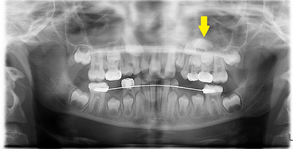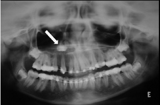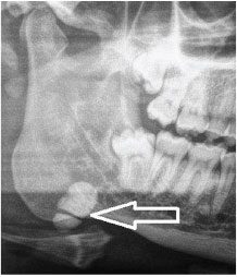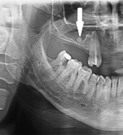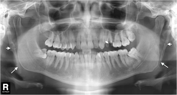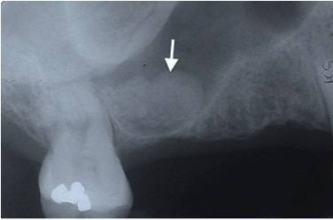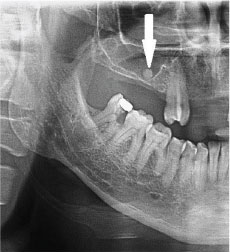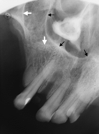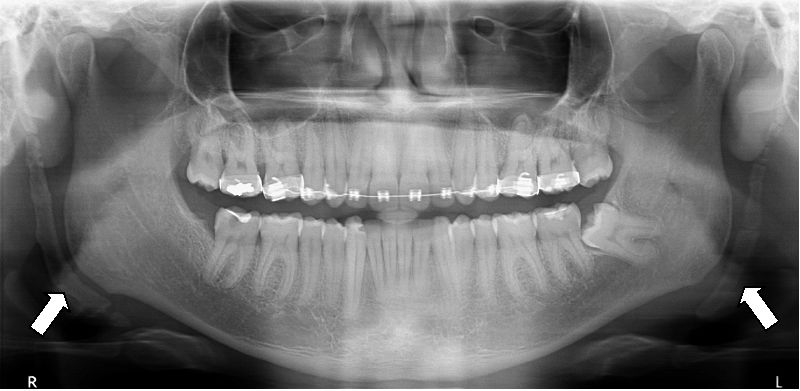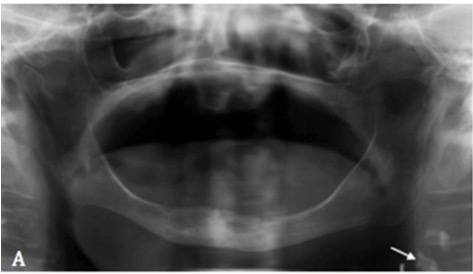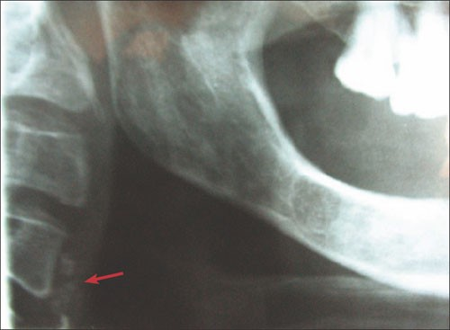 2. What condition can be seen in the following X ray? ( Open arrow)