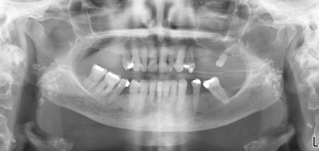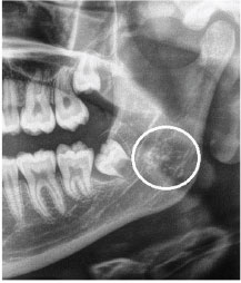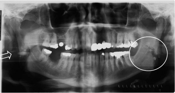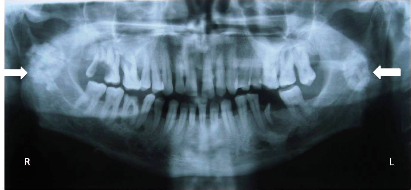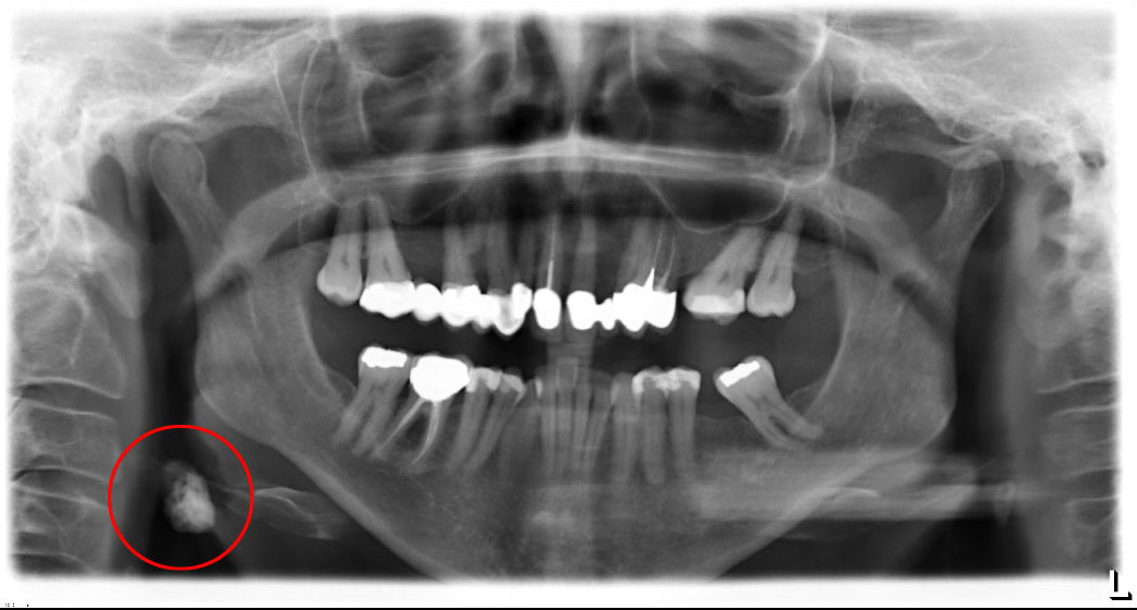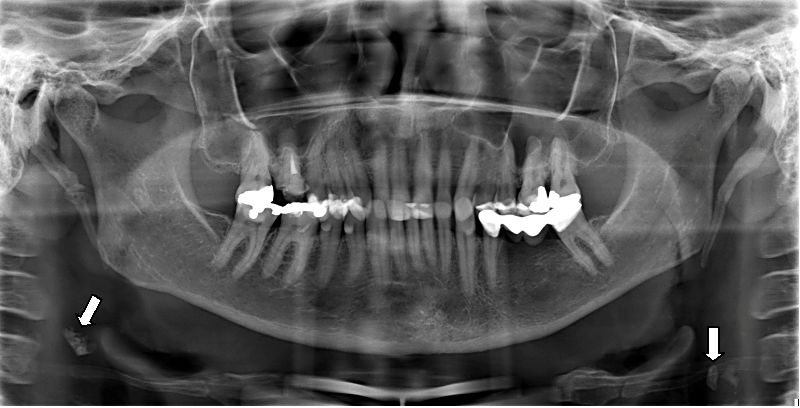 cluster of multiple small irregular opacities in the oropharyngeal area